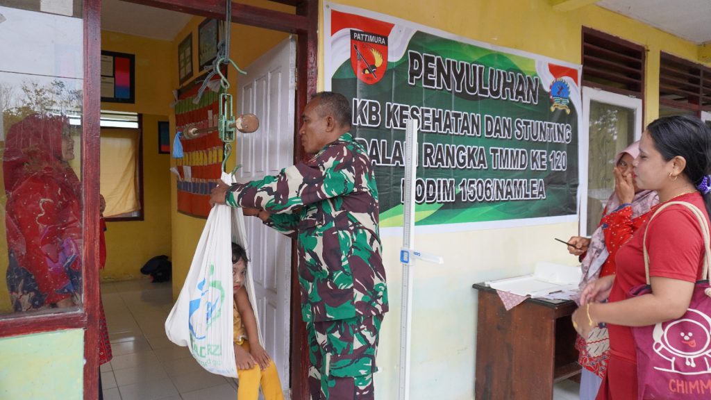 Pencegahan Stunting dan Pelayanan KB Kesehatan Jadi Salah Satu Fokus Satgas TMMD Ke-120 Kodim 1506/Namlea.