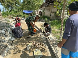 Sebagai aparat ke wilayahan Koramil 1513-01/Piru Selalu ada di setiap kegiatan di wilayah binaannya, Serda Sahrullah anggota Babinsa Koramil 01/Piru bersama warga melaksanakan kerja bakti pengecoran jalan setapak sepanjang 70 meter di Dusun Katapang Desa Lokki, Kecamatan Huamual, Kabupaten Seram bagian barat,Sabtu (06/01/2024)