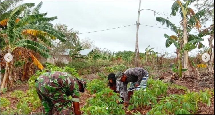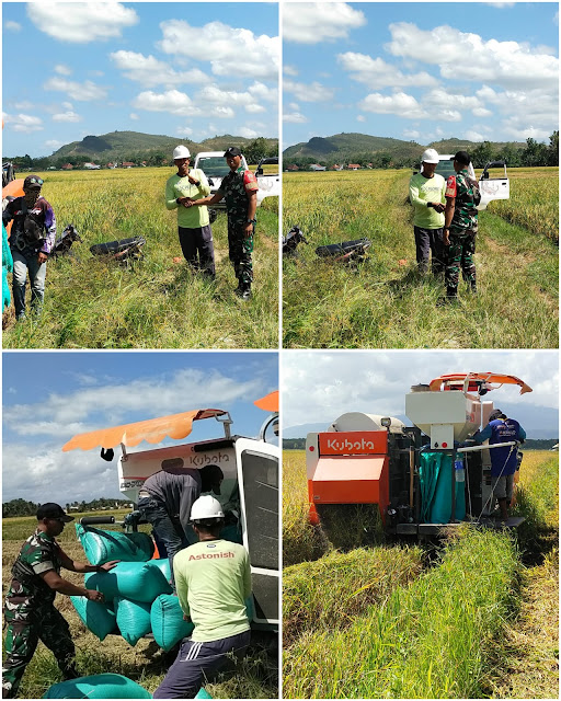 Dukung Ketahanan Pangan, Babinsa Koramil 1506-04/Waeapo Bantu Petani Panen Padi Di Desa Savana Jaya.