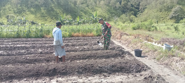 Wujud Kepedulian, Babinsa Bantu Angkat Batu Buat Pondasi Rumah Warga