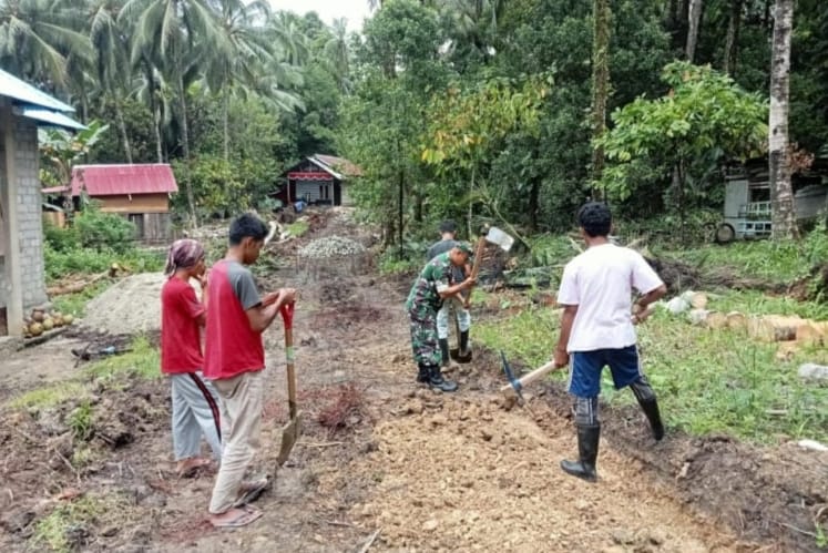 Babinsa Bersama Warga Gotong Royong Membangun Jalan Desa