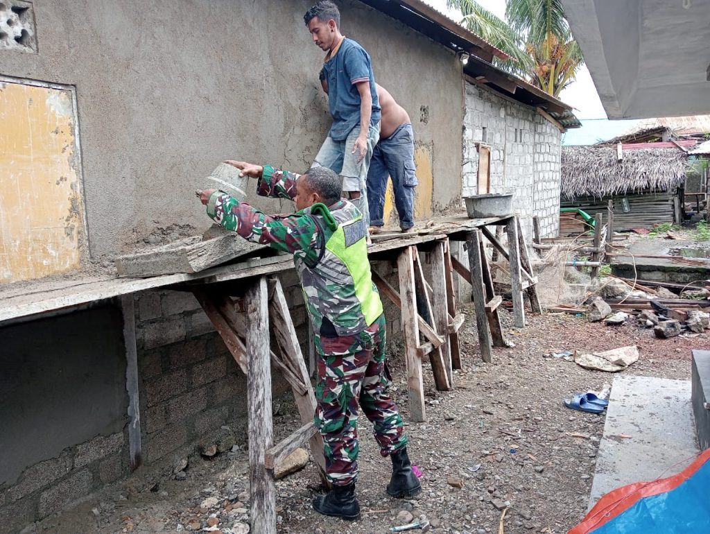 Giat Karbak, Babinsa Bantu Plester Dinding Rumah Warga Binaan