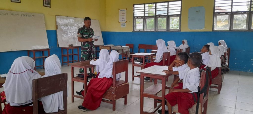 Babinsa Koramil 01/Piru Berikan Materi Wasbang Kepada Murid SD