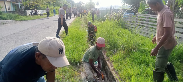 WUJUDKAN LINGKUNGAN BERSIH, SINERGITAS BABINSA ELFULE DAN BHABINKAMTIBMAS LAKSANAKAN KERJA BAKTI BERSAMA WARGA