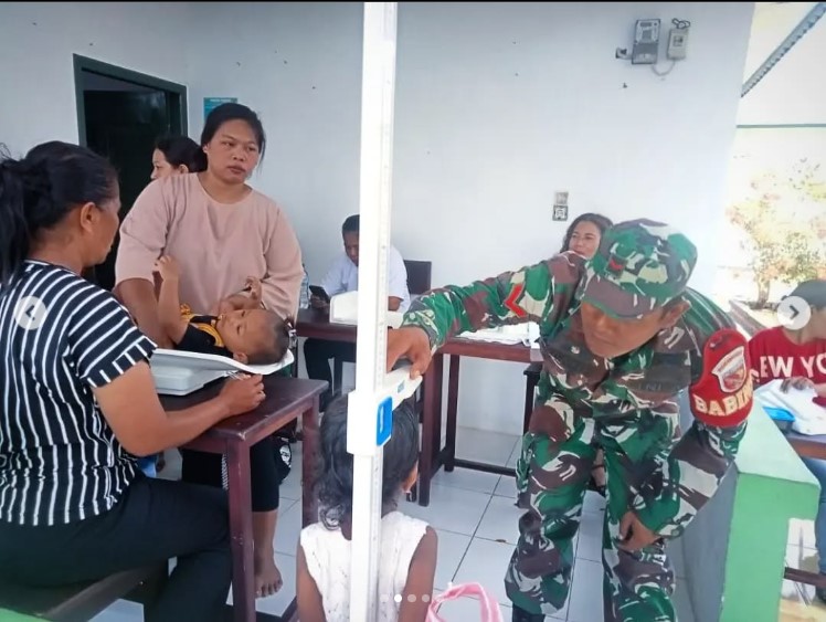 Mendukung percepatan cegah stunting di wilaya binaan, Kopda Jemy Babinsa Desa Matakus Koramil 1507-02/Saumlaki melaksanakan pendampingan kegiatan Posyandu dalam pelayanan kesehatan ibu dan anak yang dilaksanakan di Desa Matakus, Kec. Tanimbar Selatan, Kabupaten Kepulauan Tanimbar. Rabu (09/10/2024).
