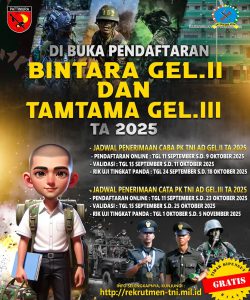 Pendaftaran online Bintara gelombang 2 dan Tamtama gelombang 3 sudah dimulai dari 11 September 2025 dan validasi mulai dari 15 September. Tinggalkan Komentar / Berita / Oleh Dwi Wahyu